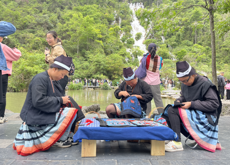 ![]() 新推非遗文化进 ![]() 邀请布依族、水族、苗族、瑶族四个民族民间艺人,在翠谷瀑布和卧龙潭等热门景点定时开展瑶族刺绣、斗鸟、竹编等“ 非遗文化 ”展演活动,让游客沉浸式感受荔波民族非遗文化魅力,全方位展示当地非遗成果和人文魅力,向游客推介非遗文化,丰富游客的旅游体验,推动文旅深度融合。 ![]()