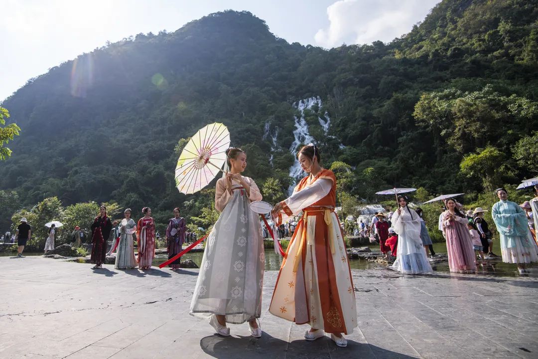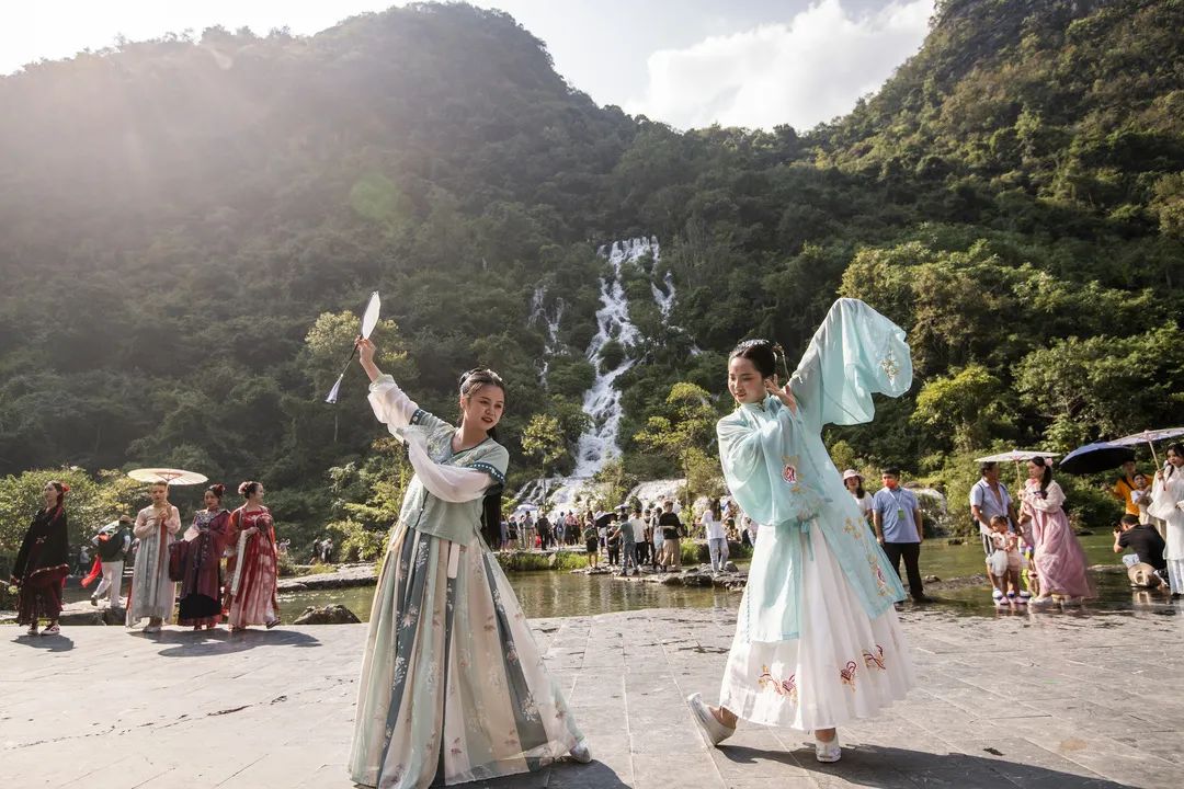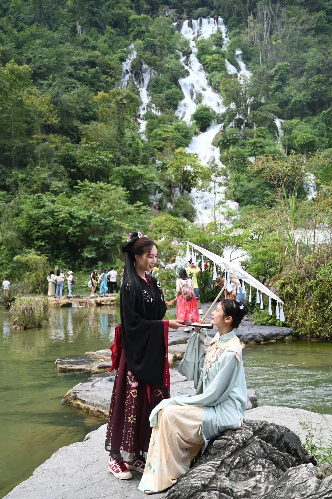 游客吴莉说:“我们本身也喜欢汉服,正好看到景区有穿汉服免票的活动,所以我们就过来了,进来之后感觉小七孔太美了,拍照很有古风的感觉,这次来值了。” ![]()