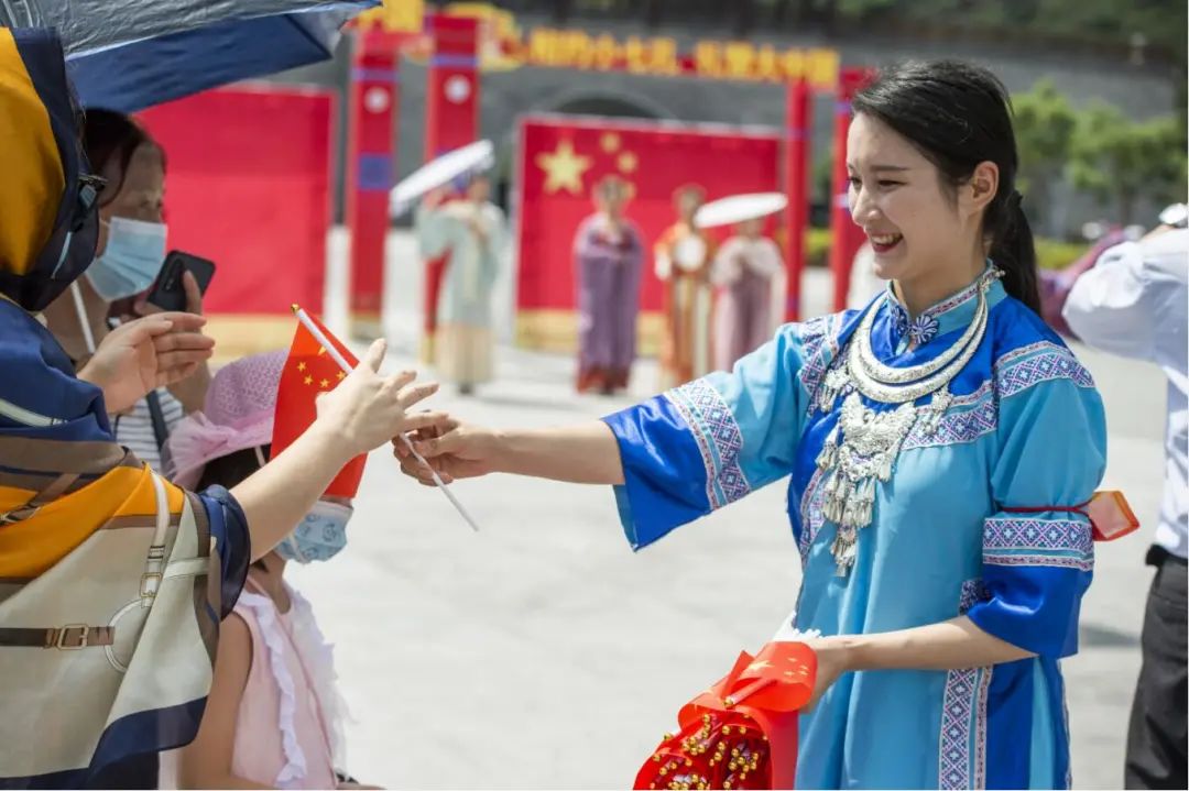七孔桥上,一群身着古装、头戴金钗、手持羽扇的各色美人身姿袅娜纷纷亮相,一场如梦如幻的传统服饰文化走秀就此展开,向过往游客展示了各类服饰、传统礼仪和各族文化,这场露天走秀仿佛带游客瞬间穿梭回那披霓裳、佩玉环的江湖时代。
