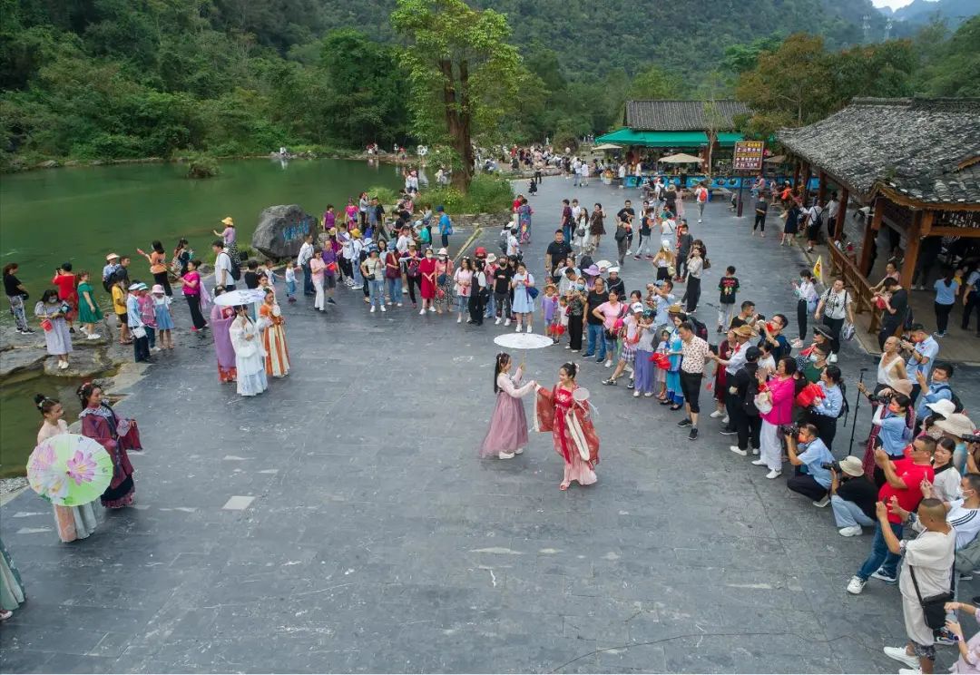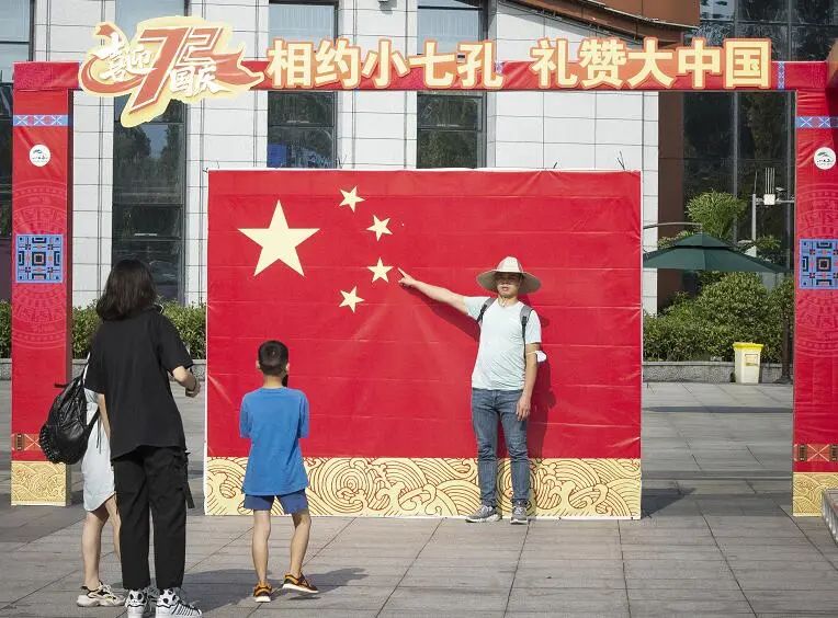 “迎国庆 、爱祖国”,游人齐聚小七孔,共度国庆祝国昌!发表时间:2021-10-01 18:47 ![]() ![]() ![]() 喜迎华诞,欢度国庆。为庆祝中华人民共和国成立72周年,小七孔景区特此推出“歌唱祖国大好河山”合唱、“相约小七孔,礼赞大中国”合影等系列活动,活动现场精彩纷呈、气氛热烈,过往游客纷纷驻足参与,共同庆祝国家繁荣昌盛,引爆景区旅游热潮。国庆首日景区迎来游客1.9万人,景区各景点秩序良好,疫情防控严格有序,接待服务规范到位。